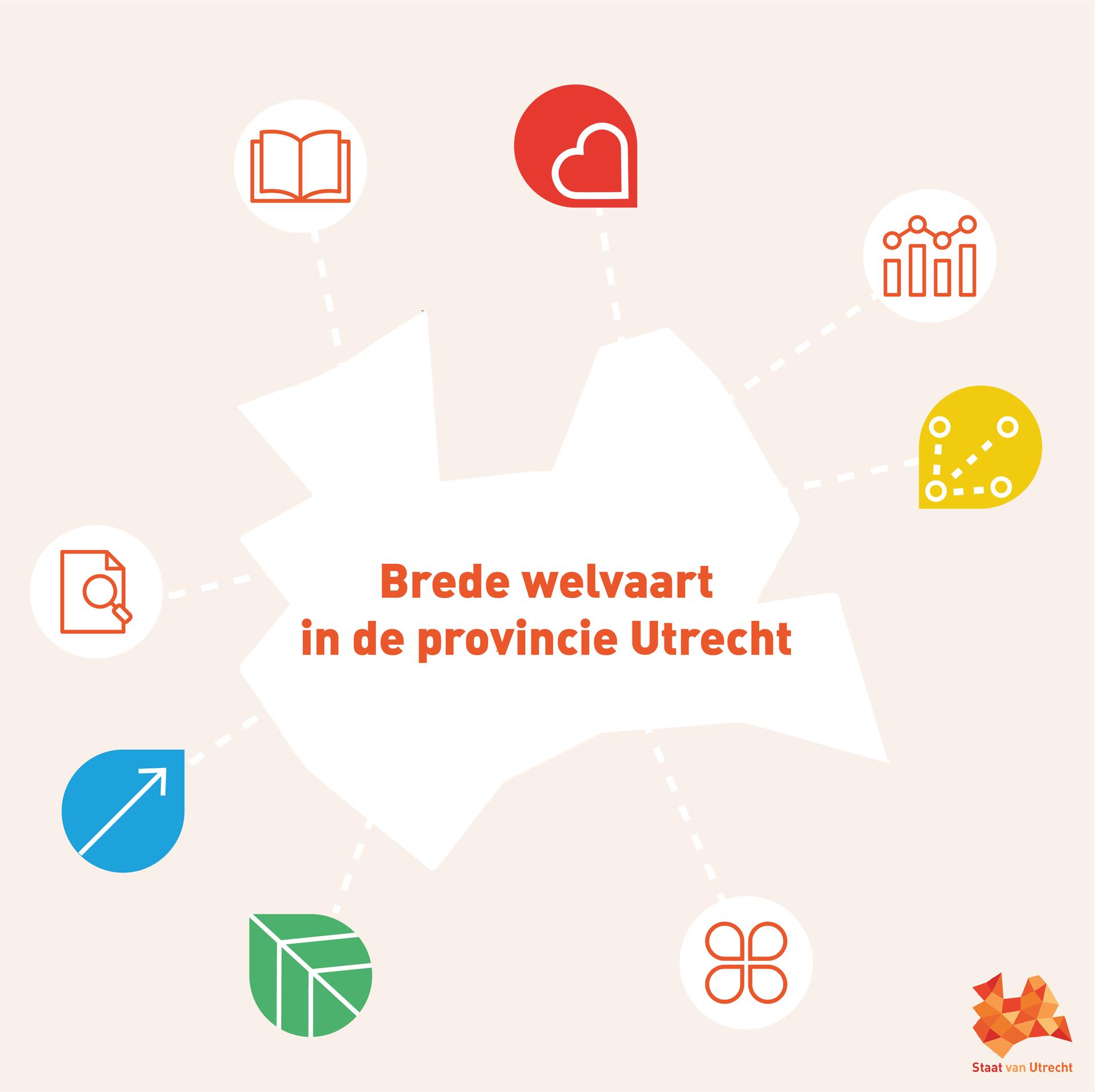 Vanaf vandaag is op de website van de Staat van Utrecht een informatiepakket en monitor over brede welvaart in de provincie Utrecht beschikbaar. Brede welvaart draait om de balans tussen persoonlijk welzijn, samenleven, economische ontwikkeling en duurzaam omgaan met de natuur. Naast informatie over brede welvaart en het meten hiervan, is er ook een monitor opgenomen waarin middels data inzicht wordt gegeven op de ontwikkeling en de staat van brede welvaart in de provincie Utrecht. Met de nieuwe Brede Welvaartmodule hoopt de Staat van Utrecht tegemoet te komen aan wensen van zoveel mogelijk partijen in de provincie Utrecht, van overheden, tot aan professionals tot geïnteresseerde inwoners, om zo een stevige kennispositie in te kunnen nemen waar het brede welvaart betreft.